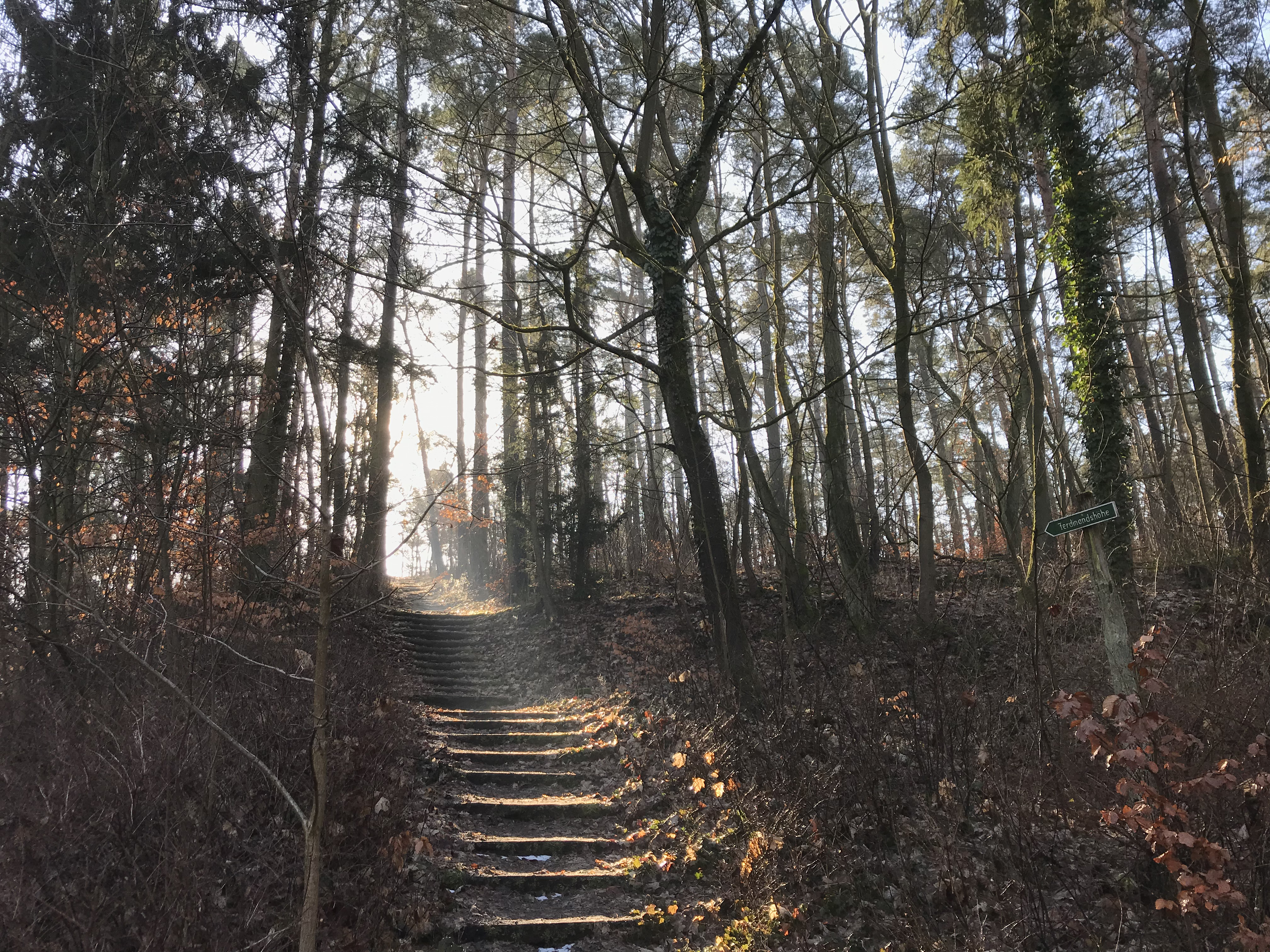 Auf dem Berg hinter dem Haus gibt es einen Feuerplatz mit einem wunderbaren Blick über Buckow und den Buckow See. Auf dem Weg zur Treppe ist der überdachte Raucherplatz, falls es doch mal regnen sollte.